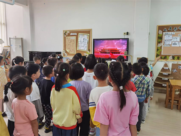 (奏国歌,幼儿行注目礼)